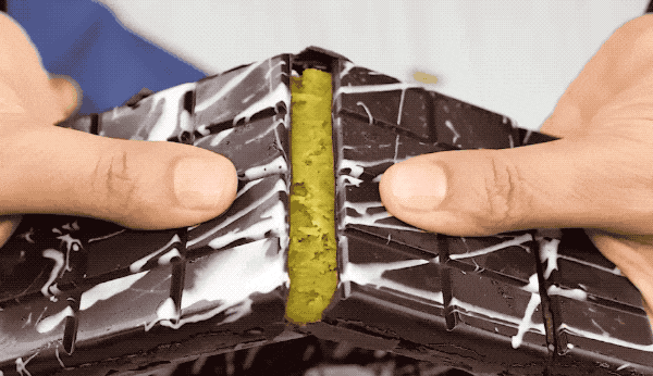 多年前吃过朋友从迪拜带来的巧克力,一小块就要十几块钱人民币!但就是普通的巧克力,没啥稀奇的。可小可爱有这么一问,小编就搜搜,结果一看,嚯!真是没见过的!看这绿油油、黏答答、还藕断丝连的夹心,到底是什么东西啊?