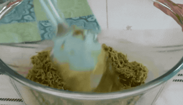 搅拌后大概是这样的,草绿色的纤维,目前这怎么看都不是很诱人(仅为个人之见)...